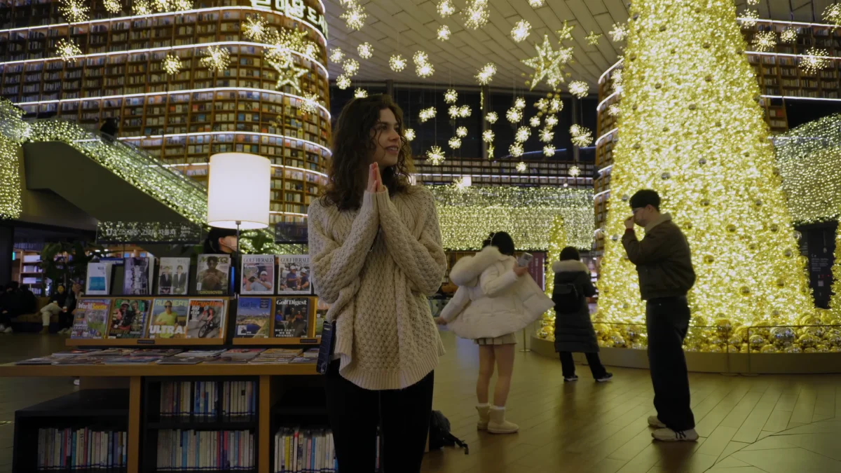Located inside COEX Mall, the Starfield Library is the ultimate destination to experience the grandeur of winter in Seoul. The massive golden Christmas tree and the star-shaped lights illuminating the ceiling create a truly magical ambiance. Watching people read and relax to the sound of jazz music captures the sophisticated winter vibe unique to this city.