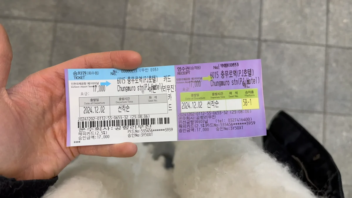 | Airport Limousine Bus | 17,000 – 18,000 ₩ | $12.50 – $13.50 |